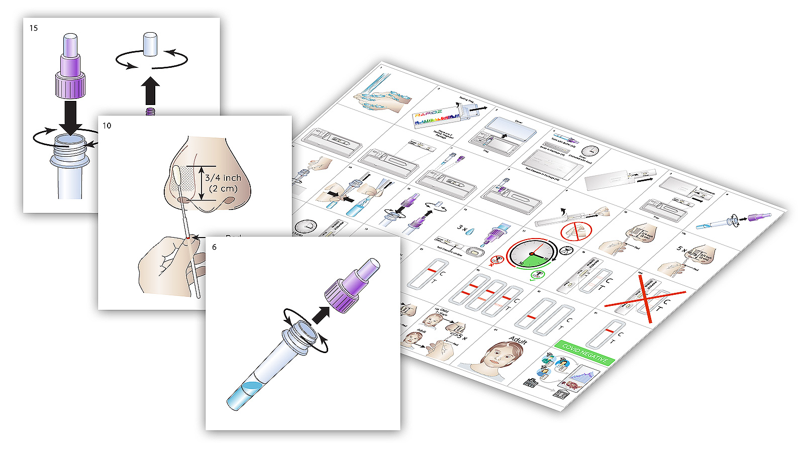 Our customer wanted easy-to-follow instructions packaged with the product. Our solution was to create custom color illustrations for print and download. The illustrations were also included in a custom web-app.